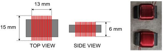 Figure 1 shows the diagram and photograph of the fabricated coils. The coil is made using insulated 24 AWG copper wire, 25 turns per layer, and 4 layers in total. The core usable area is 13 mm 13 mm and made of Material 43 from Fair-Rite with [19]. The use of ferrite will help increase the self-inductance and coupling factor of the coils, hence the mutual inductance. The characteristics of the designed coil are shown in Table 1.