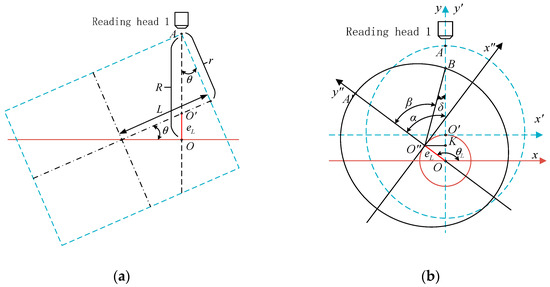 Without considering the eccentricity error, the inclination error of the circular grating with a single reading head is shown in Figure 3.