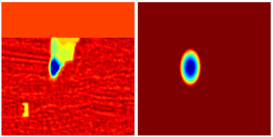 Figure 3. Uncertainty fitting of negative logarithm of a bivariate Gaussian to a matching cost slice (after spatial smoothness regularisation step). From left to right: (left) 2D cost slice, (right) the approximate 2D cost slice using a 2D Gaussian fitting.