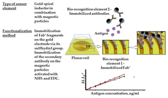 - Alipour, E.; Shariatpanahi, S.P.; Ghourchian, H.; Piro, B.; Fathipour, M.; Boutorabi, S.M.; Znoyko, S.L.; Nikitin, P.I. Designing a magnetic inductive micro-electrode for virus monitoring: Modelling and feasibility for hepatitis B virus. Microchim. Acta 2020, 187, 463. [Google Scholar] [CrossRef]