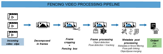 The proposed pipeline in this paper is just the starting point for further analyses and visualizations of riders’ lines and behavior on a small area on the racecourse. As the pipeline is fully modular, (metadata) pipeline elements can be added or removed as required. As an example, in sports, such as cyclocross and motocross, a MyLaps gate timing solution is often used. When the riders wear a transponder and ride over a measurement loop, their time of crossing is recorded on the MyLaps system. When such a setup is installed at the start- and endpoints of the video fences, some extra meta-information could be introduced in the video pipeline. With some post-processing and accurate time synchronization of the MyLaps and video data, rider identification and fence timing could be directly derived from the MyLaps measurements and linked to the detected skeletons in the video fence.