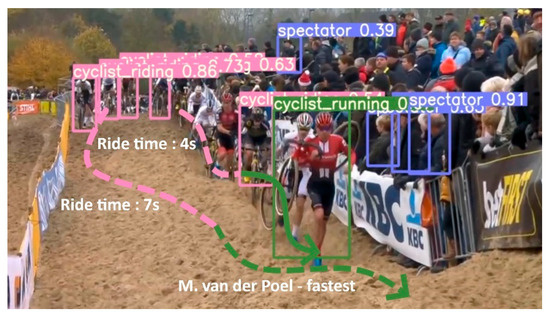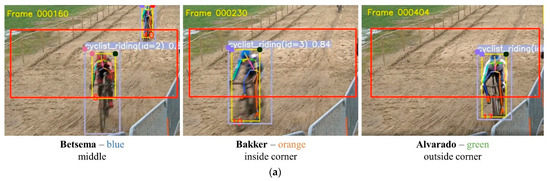 In general, data about sports events are becoming more and more available. In last year’s Tour de France, for instance, NTT showcased the potential of big data in cycling by recording more than 35 million records per stage [3]. This raw data on its own is of limited practicability and relevance for fans and sports stakeholders. The real power of the generated data is uncovered when it is summarized. When this data is summarized on a per-race level, historical race and performance insights are mostly used to predict race outcome [4,5]. However, in disciplines, such as BMX, track cycling, cyclocross, or mountain biking, data can also be summarized per lap or sector within a lap. This is especially useful as these disciplines are often won or lost on a specific part of the racecourse. The digitally collected lap or sector times can help to increase the overall sports experience of fans and athletes themselves [6]. Although lap times in sport events are already very valuable and interesting, they only provide one part of global sector analysis. They are very good at illustrating who needed the least time to go from point A to point B. However, it is not only interesting to study how much time was needed, but also the path they followed and how exactly they went from point A to point B in a certain amount of time. Rather than just the raw timings, this extra meta-information might even help to understand why one athlete went faster than another. In this paper, we present a video-based approach providing an objective data-driven answer on the “why” part of the sector data analysis question. A set of tools is proposed to present riding line insights to coaches and fans. The methodology consists of a set of state-of-the-art building blocks that are brought together to offer a solution to the riding behavior task at hand.