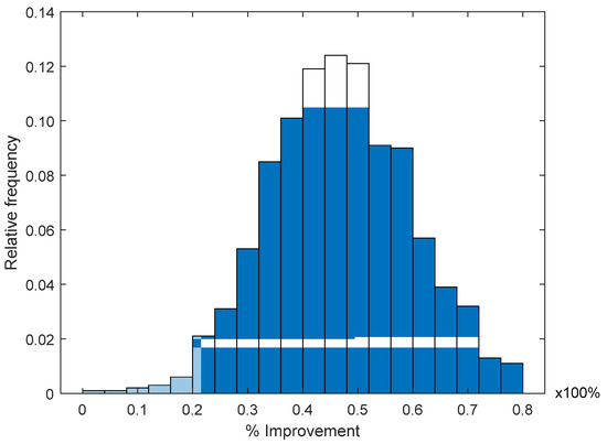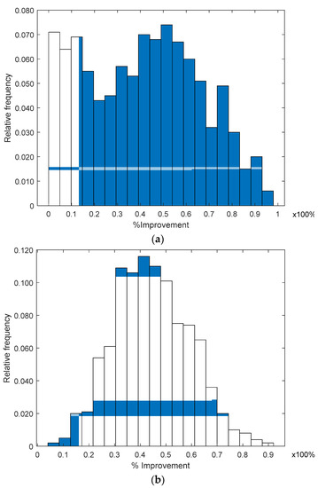 Improvement histogram achieved using RL: (a) single AN and (b) mean 3 ANs.