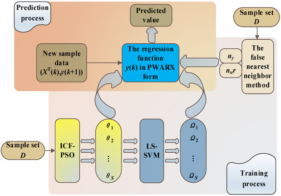 In order to improve the prediction performance of PWA multi-models, the number of sub-models and the parameters of each sub-model must be optimized. The PSO is widely adopted for fuzzy system control, neural network training, and function optimization, because it is simple to define and easy to implement, with fast computing speed [45]. Therefore, this paper applies the PSO to determine the number of models and to optimize the parameters of local models in the PWA multi-model, and introduces the ICF to improve the ability of the standard PSO to avoid the local optimum early and perform accurate local search thereafter.