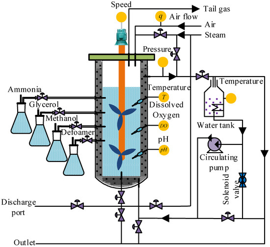 An expression system is a molecular biology technique that uses model organisms such as bacteria, yeast, animal cells or plant cells to express exogenous gene proteins. In short, the expression process is the synthesis of proteins under the guidance of genes. The Pichia pastoris expression system is a technically mature eukaryotic expression system, and one of the most successful foreign protein expression systems [1]. The expression system of Pichia pastoris has been developed for more than 30 years, and so far, nearly 1000 heterologous proteins have been successfully expressed by this system, which has a promising development [2]. In addition, the low cost but high yield of the Pichia pastoris expression system makes it economically valuable. Pichia pastoris is also a facultative anaerobe, which is very easy to carry out genetic manipulation and cultivation on [3]. The Pichia pastoris expression system has obvious advantages in the processing, external separation, post-translational modification, and glycosylation modification of expression products [4]. Nowadays, many regions are being plagued by the Coronavirus (COVID-19). In order to fight COVID-19, the recombinant expression of proteinase K in Pichia pastoris has attracted widespread attention [5,6]. Protease K has drawn attention for its following capabilities: cracking the COVID-19 virus to release nucleic acid, eliminating ribonuclease (RNase) to prevent ribonucleic acid (RNA) degradation, and inactivating the COVID-19 virus to denature the virus protein [7]. Therefore, protease K becomes an important component of nucleic acid detection kit for sample pretreatment, and plays a significant role in COVID-19 detection [8]. However, the fermentation process of recombinant expression of protease K by Pichia pastoris is nonlinear, coupled, uncertain, and time-varying [9]. There are few online detection instruments for the key biomass variables of the Pichia pastoris fermentation process (such as cell concentration, protease K concentration, etc.) [10] As for the offline assay and analysis methods, the long interval of data acquisition drags down the real-time performance, and adds to the risk of flora pollution. Moreover, the assay results are often inaccurate, due to the large errors of human operation [11]. With the development of the times, biosensors that can detect biomass on-line in real time emerge as the times require. Biosensors have the advantages of high sensitivity and a fast analysis speed; however, a highly automated, miniaturized and integrated biosensor is often very expensive [12].