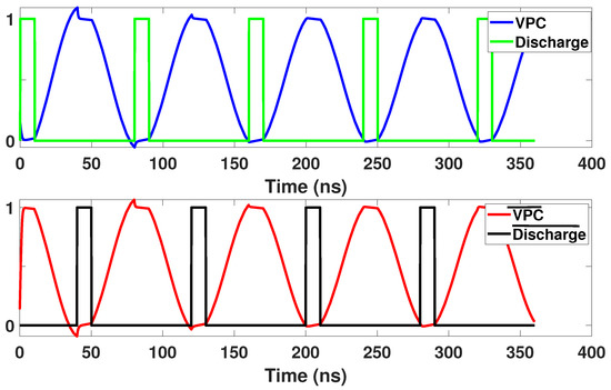 EE-ACML and many other CPA resistant adiabatic circuits rely on discharge signals to defend against power analysis attacks. Discharge signals are used to ensure both outputs have no remaining charge before the next cycle begins. The discharge signals are placed when their respective clock signals are at GND. The discharge signals play an important role in lowering the correlation between the power and logic operation. Thus, in a previous work we developed a novel way for discharge and to have a dual-function: (i) Control signals for the clock generator (ii) discharge the load capacitors of the adiabatic logic circuit [30]. This duality allows for a reduced number of external signals and simpler designs. The timing diagram of the external control signals is shown in Figure 8.