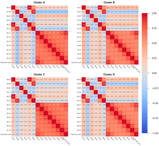 In this section, we describe the data collection and preprocessing that we performed to configure and train our forecasting model. We collected the electricity load data of buildings of a private university in Seoul, Korea at 15 min intervals from the Korea Electric Power Corporation through the i-Smart system. We classified the university buildings into four clusters based on their use and location. Cluster A consists of humanities and social sciences buildings, while clusters B and D are both science/engineering buildings and their laboratories. Finally, cluster C is dormitories and sports facilities. The data were collected for 67 months from 1 January 2015 to 31 July 2020 for clusters A, B, and C, and 58 months from 1 September 2015 to 31 July 2020 for cluster D. In addition, we considered calendar information, weather data, and historical load data as input variables to the load forecasting model. The details are described in the following subsections.