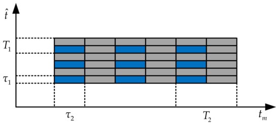 In Figure 2, the blue blocks represent the signal after the interrupted sampling in the fast and slow time domains, and the grey blocks represent the signals that are not sampled. The pulse width of the interrupted sampling in the fast time domain is , and the sampling period is . Similarly, the pulse width of the interrupted sampling in the slow time domain is , and the sampling period is .