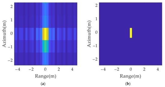 Comparison of single scattering point’s imaging results before and after side lobe elimination: (a) without side lobe elimination; (b) with side lobe elimination.