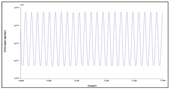 Another validation test can be conducted by supplying channel 1 with a sinusoidal signal with a peak-to-peak voltage equal to 250 mV and a frequency equal to 10 Hz. The signal is acquired correctly by AFE, as shown in Figure 9.