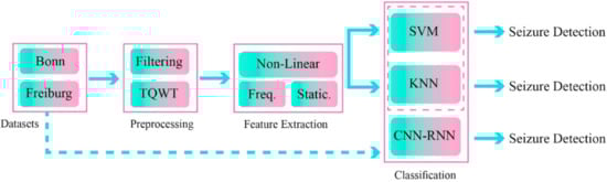 - Aayesha; Qureshi, M.B.; Afzaal, M.; Fayaz, M. Machine learning-based EEG signals classification model for epileptic seizure detection. Multimed. Tools Appl. 2021, 80, 17849–17877. [Google Scholar] [CrossRef]