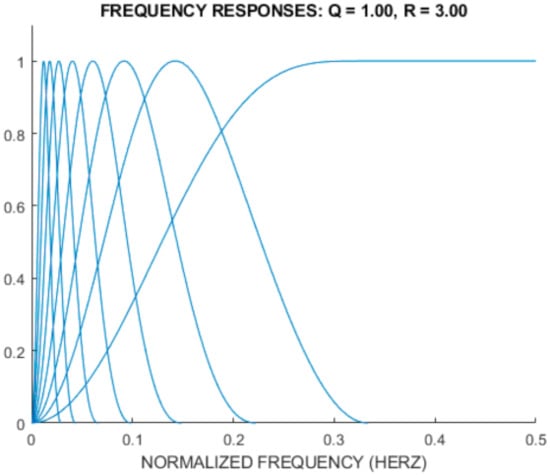 Additionally, Figure 5 shows the frequency response for TQWT based on the r = 3, Q = 1, and J = 8 parameters.