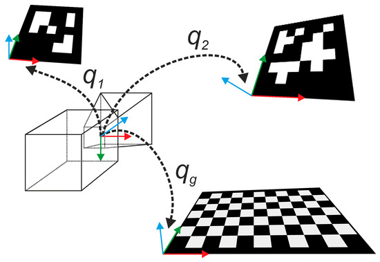 From the OpenCV ArUco Module [20] for each ArUco marker and for the horizontal reference checkerboard, we get the rotation matrices and the translation vectors with respect to the camera reference frame.
