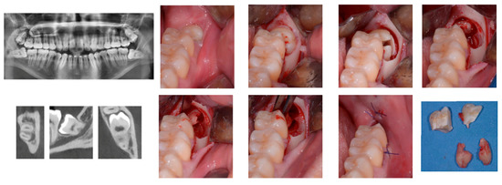 Surgical technique is the same used for extraction of the lower third molar. Patients enrolled in the study will not be exposed to any additional risk than the usual surgery techniques. In Figure 11 a sequence of snapshots from the performed interventions.