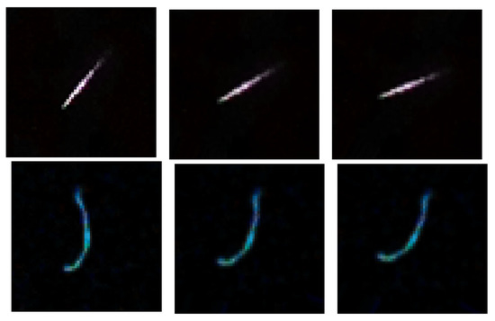 To have a better idea of the three main types of images appearing in the set of detections, in Figure 2 we show examples of spots, tracks and worms. In addition, Figure 3 shows artefacts, i.e., images that do not correspond to particle’s passage through the detector.