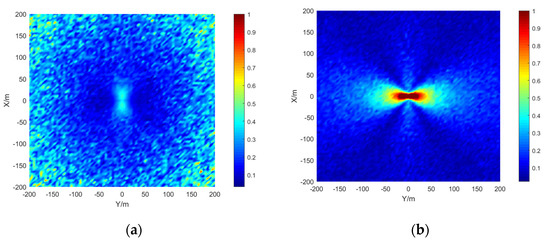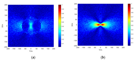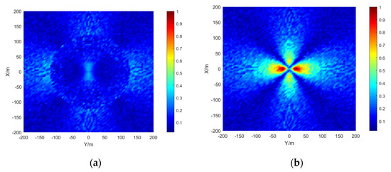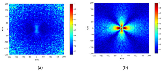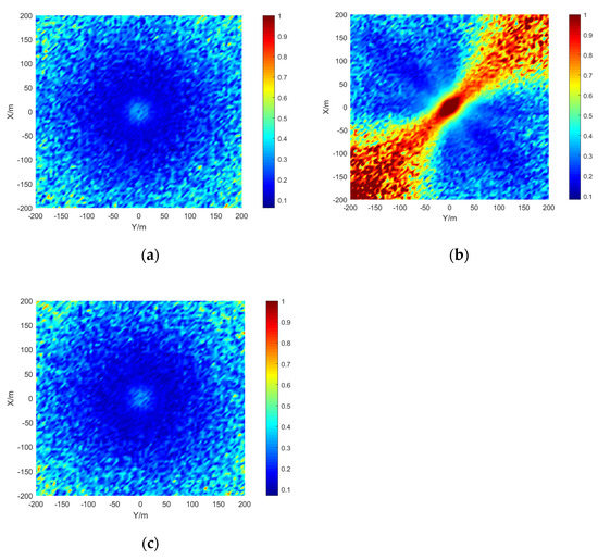 The simulation area is set to 400 × 400 m, the grid size is 5 × 5 m, the depth is 15 m, the signal-to-noise ratio is 20 dB, and the number of simulations per location is 50. The results are shown in the Figure 9, Figure 10 and Figure 11: