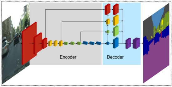- Badrinarayanan, V.; Kendall, A.; Cipolla, R. SegNet: A Deep Convolutional Encoder-Decoder Architecture for Image Seg-mentation. IEEE Trans. Pattern Anal. Mach. Intell. 2017, 39, 2481–2495. [Google Scholar] [CrossRef]