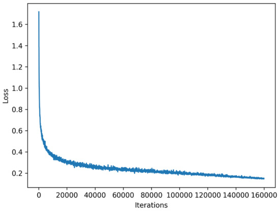 We also adopt various data augmentation strategies to expand the training data, including random cropping images into 1024 × 512, random scaling in the range of 0.5 to 2.0, random horizontal flipping with probability of 0.5, and random photo metric distortion. Our model is trained with cross entropy loss for 160 k iterations (shown in Figure 5 below). The batch-size is set as 16, and synchronized batch normalization (SyncBN) [35] is deployed before non-linear functions.