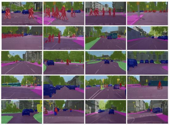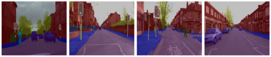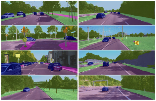 - Cordts, M.; Omran, M.; Ramos, S.; Rehfeld, T.; Enzweiler, M.; Benenson, R.; Franke, U.; Roth, S.; Schiele, B. The Cityscapes Dataset for Semantic Urban Scene Understanding. In Proceedings of the 2016 IEEE Conference on Computer Vision and Pattern Recognition (CVPR), Las Vegas, NV, USA, 27–30 June 2016; pp. 3213–3223. [Google Scholar] [CrossRef] [Green Version]