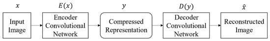 Mathematically, let  denote the initial input image dataset, where H, W are the number of pixels corresponding to the Height and Width of every image X, and M is the number of samples. Additionally, E and D denote the Encoder and Decoder, respectively. Then, the encoded representation , where h and w are the width and depth dimensions of the compressed spatial 2D representation, and the decoded reconstruction  consist of the output of the encoder and decoder, respectively, that is: