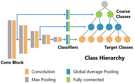 - Zhu, X.; Bain, M. B-CNN: Branch Convolutional Neural Network for Hierarchical Classification. arXiv 2017, arXiv:1709.09890. [Google Scholar]