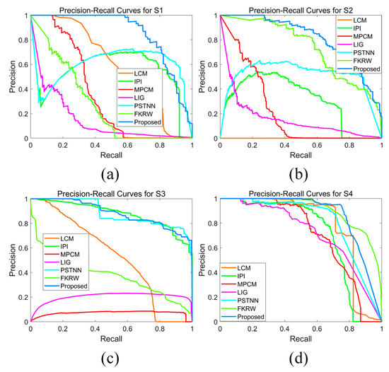 Figure 14. The PRC on different sequences: (a) PRC for S1, (b) PRC for S2, (c) PRC for S3, and (d) PRC for S4.