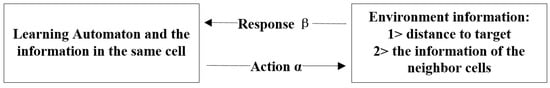 The CLA comprises a CA and an LA. A CA is a system based on cells that are presented in a grid-like structure [,]. Each cell is a discrete individual that contains certain information and rules. Its own condition is only affected by its own state and the state of the surrounding cells []. The corresponding formula is as follows: