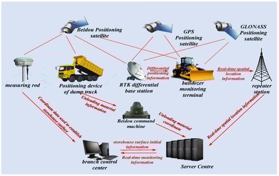 At present, in practice, the quality control of paving is mainly dependent on traditional methods such as on-site monitoring of the paving process and random sampling after paving, which is time-consuming and laborious and provides unreliable results and limited coverage. When the levelling layer is too thick, there is a serious separation of coarse and fine materials, which results in the unstable and unsafe operation of earth-rock dams [,]. Furthermore, in the majority of cases, the operation path that allows bulldozers to cut and move earth-rock materials is planned based on the operators’ work experience. Most importantly, conventional levelling quality control is mainly dependent on the random spot test that is conducted after the levelling work is complete []. Thus, there are many problems associated with this levelling quality control method, such as delayed feedback, low productivity, and high dependence on human experience.