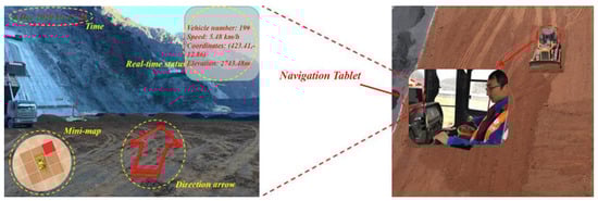 The method proposed in this study was applied to a high earth-rock dam in southwest China. The dam is a core-wall earth-rock dam having a height of 295.0 m, total fill volume of 41.6 million m3, and a core wall area of 348 m length and 55.6 m average width. The field experiment of this study was conducted in the core wall area, and the bulldozer model used was SD32, manufactured by Shantui Construction Machinery Co., Ltd., Jining, China. A tablet equipped with an intelligent guidance program for the paving process was installed on the front windscreen of the bulldozer, such that the operator could see the arrow indication without any obstruction to the view from the windscreen.