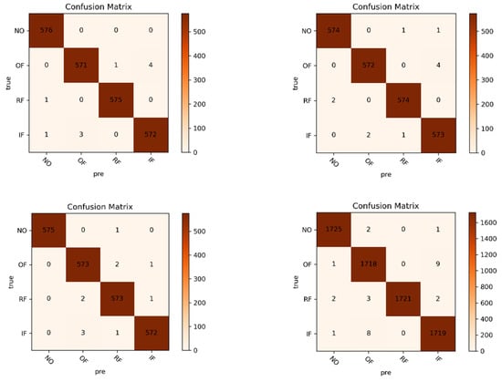 - When the size is 64, it is obvious that it is difficult to guarantee that an image contains complete information about the fault features. Images sized 128 have the best performance, and larger images contain more information but cause the network parameters to increase and make the training time of the network much longer.