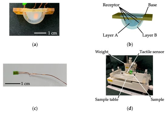 Quantitative evaluation of tactile sensation is important in industry because tactile sensation is a characteristic of products that relates directly to product value, especially for consumer products [1,2,3,4]. Sensory evaluation is generally conducted to quantify tactile sensation but requires an extremely large number of participants to ensure reliability, resulting in high financial and time costs. There is thus strong demand for the establishment of tactile sensing technology.