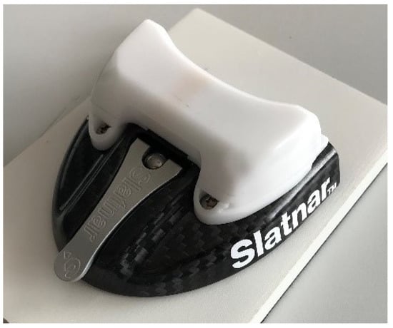 The other main component is the mobile trackers that are attached to the skis of the athletes. In cooperation with the ski binding manufacturer Slatnar, the trackers were designed for easy attachment to the bindings to facilitate their use. An example of the attachment is shown in Figure 2.