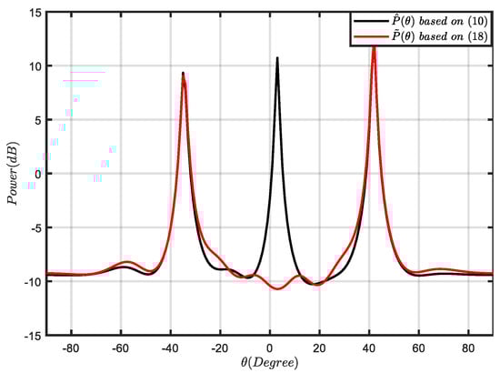 Comparison of the Capon power spectrum (10) and the power spectrum based on (18) with , , and .