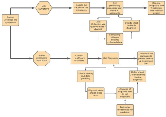 The Process Flow Representation of Diagnosis of Diseases using AI.