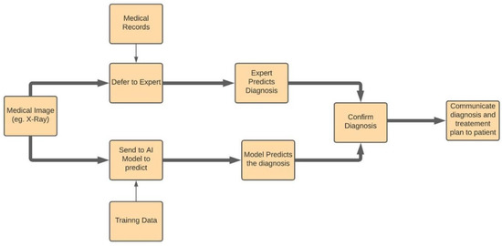 The Process Flow Representation of Medical Image Diagnosis using AI.
