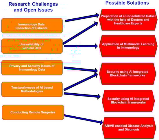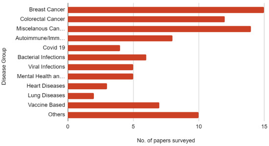 The biggest problem with cancer cell growth is that these cells can avoid destruction by the immune system. Due to this, the immune system needs to be trained and manipulated to fight these cells properly, which is termed immunotherapy. Certain cancers for which research is actively being done include breast cancer, small cell lung cancer, colorectal cancer, skin cancer, etc. Identifying immune biomarkers to judge and direct the immune system’s response is a key area of research for cancer treatment [58]. Lastly, one of the most important applications of immunology is in the development of vaccines. Vaccinations work on the principle of introducing small amounts of weakened pathogens and disease-causing microorganisms into the human body, thus triggering an immune response against them. Since the microbes are already weakened, the body can easily fight off the infection and build immunity by generating the correct antibodies. These antibodies then stay in the body for a while, thus making sure that the immune system is primed to take action the minute the microbes enter our body again. Vaccinations, since their inception, have saved countless lives [59]. COVID-19 is the human race’s biggest bane in the current scenario. The development of vaccines for the same has been and continues to be one of the most important tasks in the medical research area. However, proper research has to be done about the immune system response, immune checkpoints, and biomarkers for the disease to build the vaccine. Furthermore, even mental disorders like depression, anxiety, schizophrenia, functional disorders, Alzheimer’s disease, etc., find a base in immune responses and other kinds of heart and lung diseases.