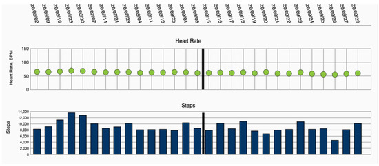 Step count monitoring is popular in the general population, using wearable devices such as smartphones, smartwatches, or wearable pedometers [43]. Just as described above for the resting heart rate, population-based cohort studies showed that a higher number of steps per day correlated with a lower mortality rate in a cohort of adults [44]. In the MADIT-CRT trial, a reduction in activity level was evaluated as a short-term predictor for adverse cardiovascular events in patients with heart failure and implanted cardiac resynchronization device [45].
