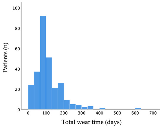Distribution of wear time of the wearable cardioverter–defibrillator.