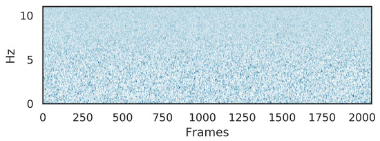 is the filter output, , the filter number is I. The fast Fourier transform (FFT) point number is , , and the total FFT frequency point is E. In the energy spectrum, the th point energy is . The weight uses each filter output of the frequency range, and the energy spectrum of the corresponding frequencies is superimposed, which is only added up in the filter range. For a signal sequence, have I outputs. The several I output mel-filters are overlapped in time, which generate the mel-scale acoustic spectrum in Figure 2. Mel-spectrum data are fed into the used network to yield better classification results.