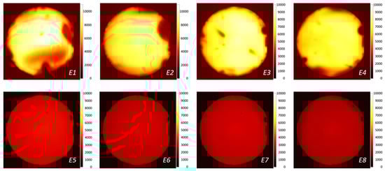 The PL images showing the spatial variation of effective lifetime across the wafer were taken for all eight wafers. The PL images were calibrated using the measured QSSPC lifetime at injection levels shown in Table 2. The calibrated PL images are presented in Figure 9. The samples with SiO2/SiNx passivation exhibit ~3 times higher effective lifetime compared with the samples with SiNx passivation but inferior uniformity. The origin of this insignificant non-uniformity is not understood.