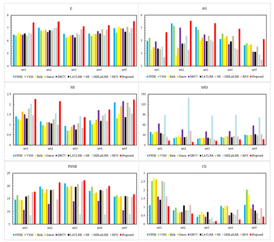 | Algorithm | E | AG | MI | CE | SPD | PSNR |