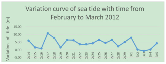 Through 23 days of continuous GPS monitoring, the time series of the vertical movement of the ice shelf caused by the sea tide was obtained. The altitude change of the ice shelf is shown in Figure 11.