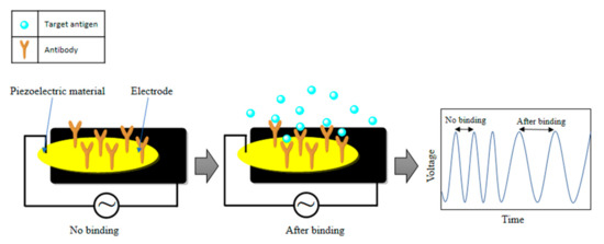 The operation principle of a piezoelectric biosensor.