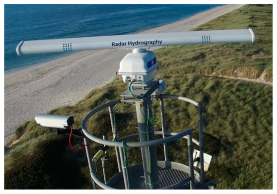 The classical MR operates in X-band (9.4 GHz), at grazing incidence, as an incoherent pulsed radar system transmitting a short (typically 50 to 100 ns) electromagnetic pulse and measuring the returned backscatter intensity in space (in polar coordinates) and time, which is related to the radar cross section (RCS). A MR is a typical imaging radar that extracts a RCS image of its surroundings (approximately every 2 s) by scanning the area with its rotating antenna. With respect to hydrographic applications, the RCS of the ocean surface primarily results from the small-scale surface roughness (~3 cm). At grazing incidence (>85°), the RCS is proportional to the spectral density of the surface roughness on scales comparable to half the radar wavelength (Bragg scattering), which in the case of X-band is ~1.5 cm. In addition, at grazing incidence, and especially at horizontal polarization, the radar backscatter results from other scattering mechanisms, e.g., small-scale wave breaking and wedge scattering (for details refer to the special issue by Brown [3]). The MRs for hydrographic application’s record this information in time and space digitally, enabling the retrieval of various parameters such as wind [4,5], waves [6,7] and currents [8,9].