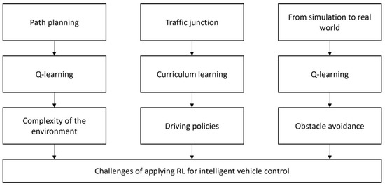 In this work we have investigated some of the challenges of applying RL within the context of intelligent vehicle control as a real-world application. By referring to common intelligent vehicle control tasks such as path planning using RL, several problems may arise such as the existence of many possible states that the agent should experience, the existence of multiple agents, difficulty of representing states or how should we formulate these safety-critical tasks to be solved by trial-and-error. Considering a use case on path planning, we illustrate how the environmental complexity influences the learning time and the performance of the agents. To mitigate the challenges incurred, we discussed the use of two approaches: a method for transferring RL policies from simulation to reality and a CL based approach to improve learning in driving decision making scenarios. Both these approaches were demonstrated and discussed with reference to use cases pertaining to intelligent vehicle control. Our sim-to-real approach shows to be successful to transfer a collision avoidance policy from a simulated environment to the real world. In a real-world context, our results enhance the importance of simulation to reality experiments by showing that the number of collisions during training time can be minimised in simulation. In our second approach, we demonstrated how CL can be useful when applied to intelligent vehicle control situations. The results showed that using agents with a curriculum to structure the learning process can be beneficial in driving decision making tasks such as a traffic junction task where multiple agents need to negotiate their passages.