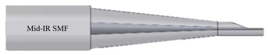 - Chen, J.H.; Sun, Y.T.; Wang, L.A. Reducing splicing loss between a silicon-cored optical fiber and a silica optical fiber. IEEE Photonics Technol. Lett. 2016, 28, 1774–1777. [Google Scholar] [CrossRef]