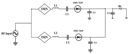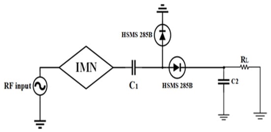 Topology of a conventional voltage doubler rectifier circuit (IMN = impedance matching network).