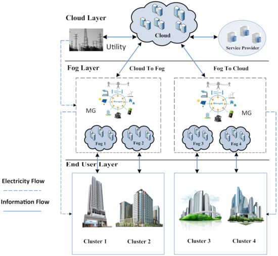 - Akram, J.; Najam, Z.; Rafi, A. Efficient Resource Utilization in Cloud-Fog Environment Integrated with Smart Grids. In Proceedings of the 2018 International Conference on Frontiers of Information Technology (FIT), Islamabad, Pakistan, 17–19 December 2018; pp. 188–193. [Google Scholar] [CrossRef]