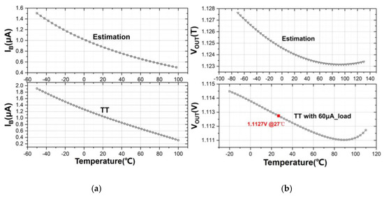 (a)Temperature characteristic of IB(T); (b)Temperature characteristic of VOUT(T).