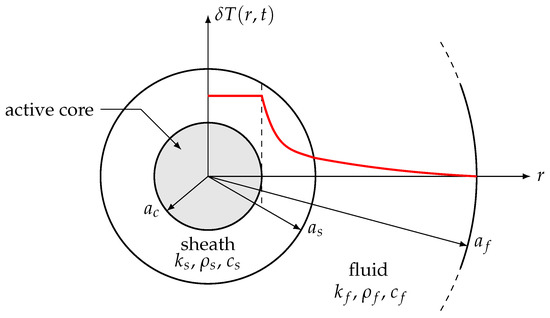 where and are the density and the specific heat of the active core, respectively, and is the temperature of the sheath, at the interface with the active core at .